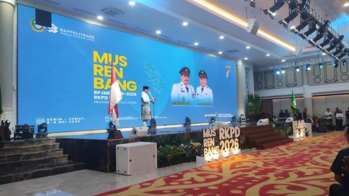 TRIBUN-MEDAN.com, MEDAN - Gubernur Sumut Bobby Nasution menyentil Bupati Madina Saipullah Nasution di kegiatan Musyawarah Perencanaan Pembangunan Rencana Pembangunan Jangka Menengah Daerah dan Rencana Kerja Pemerintah Daerah (Musrenbang RPJMD dan RKPMD) TA 2025-2026 di Kantor Gubernur Sumut, Senin (5/5/2025).